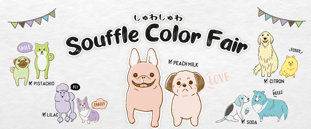 スフレカラーは彩度が高く、主線や単体でオブジェクトを表現するデザインだと見えにくい場合があります。50%以下でほぼ見えなくなります。