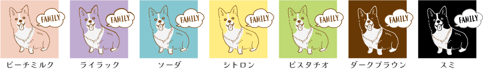 上記の色見本は白い用紙に印刷した際のイメージです。実際は用紙の地色や質感の影響を受けるため発色が変わります